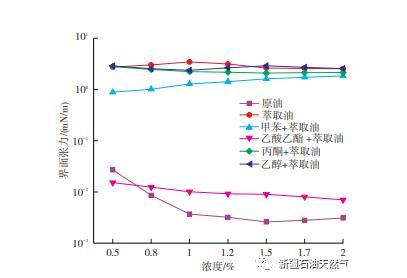 原油中活性物質與堿作用下對界面張力的影響