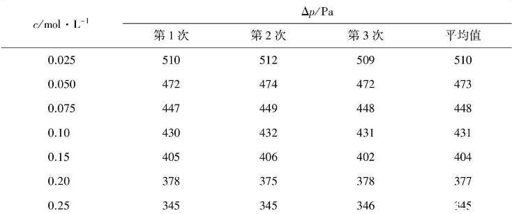 ⑥按照上述方法測(cè)定不同濃度正丁醇溶液的Δpmax值。不同溶液測(cè)定時(shí)須按低濃度到高濃度的次序測(cè)定;測(cè)定每一樣品時(shí)只需要用同樣濃度的溶液淌洗3次即可,并對(duì)測(cè)量數(shù)據(jù)進(jìn)行記錄(例見(jiàn)表1)。