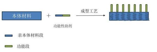 1.脫模劑通過親本體材料段和功能段嵌段共聚的方式,使得功能助劑經親本體材料段牢固地懸掛在本體材料表面。