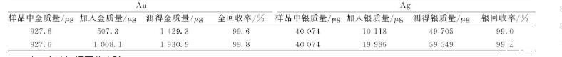 表2結(jié)果為用乙酸除鉍火試金法,再進行如表1的實驗,從表2可以看出金加標回收率99.2%~101%,銀加標回收率98.2%~99.7%,說明已消除鉍的干擾,結(jié)果準確可靠。