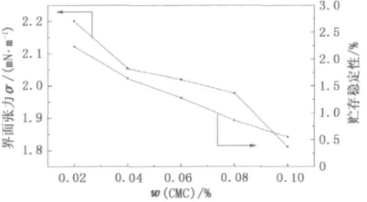 圖4羧甲基纖維素鈉對油水界面張力和貯存穩(wěn)定性的影響