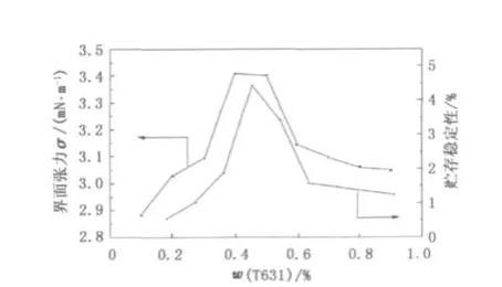 圖3締合型增稠劑T對油水界面張力和貯存穩(wěn)定性的影響