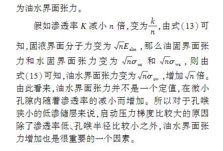 油藏儲層油水界面張力是形成啟動壓力梯度的微觀成因