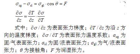 通過(guò)對(duì)成形過(guò)程彎折區(qū)域材料的溫度梯度和界面表面張力進(jìn)行分析可知,激光熱應(yīng)力成形界面處的表面張力與潤(rùn)濕角θ的關(guān)系可用楊氏方程表示,見(jiàn)式(1)。在成形結(jié)束后,界面表面張力的矢量和為零,同時(shí)熔凝層表面張力與溫度梯度存在如式(2)所示的關(guān)系。