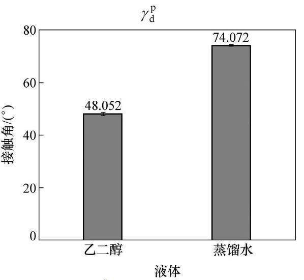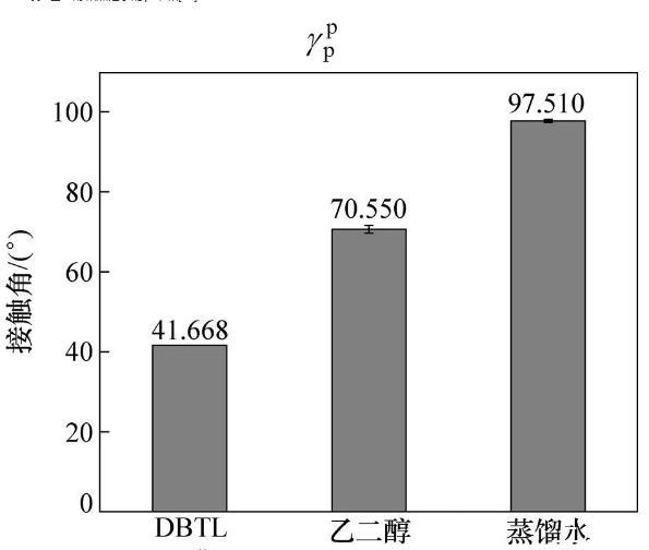 調(diào)和平均法計算CBT500與DBTL界面張力(12),CBT500、DBTL表面張力()、極性分量(p)、色散分量(d)研究是基礎(chǔ)。CBT500色散分量、極性分量通過引入2種測試液體求解二元二次方程組,DBTL色散分量、極性分量通過研究DBTL在PP薄板上靜態(tài)接觸角并結(jié)合表面張力是材料極性分量、色散分量之和進行二元二次方程組求解。