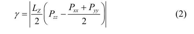 對于表面活性劑來說降低界面張力的能力是考察其性能好壞的重要指標(biāo)之一,下面通過考察不同體系的界面張力和界面寬度來進(jìn)一步說明OPES的界面性能,如表1所示。對于界面張力可以利用式(2)來計(jì)算,其中LZ為盒子高度;Pxx、Pyy、Pzz分別為x、y、z方向的壓力。