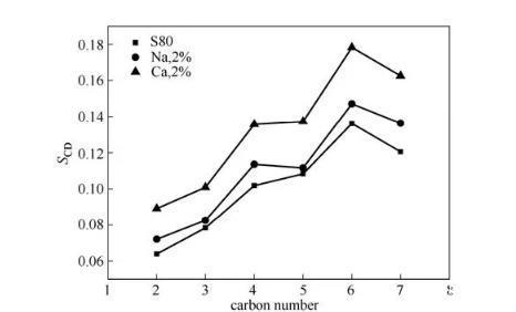 圖9在不同離子溶液中疏水鏈碳原子的序參數(shù)