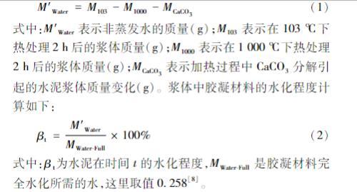 采用TAMAir八通道微量熱儀測試水泥凈漿96h內(nèi)的水化熱。用非蒸發(fā)水燒失量測試值來估算水泥的水化程度。