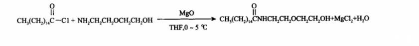 1.1.1試劑棕櫚酸酰氯,工業(yè)級,質(zhì)量分?jǐn)?shù)≥96%,上海卓銳化工有限公司生產(chǎn);二甘醇胺,色譜純,質(zhì)量分?jǐn)?shù)≥98%,阿拉丁試劑(上海)有限公司提供;其余均為分析純試劑,皆由中國醫(yī)藥(集團(tuán))上海化學(xué)試劑公司提供。
