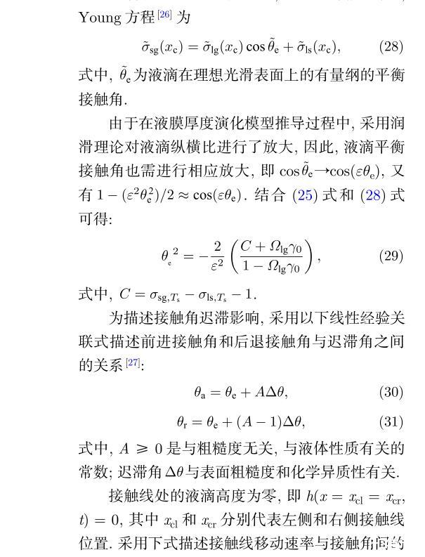 > 接觸角遲滯時氣~液界面張力的溫度敏感性對液滴蒸發過程的影響——理論模型及計算方法