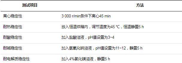式中,K代表比例系數;V上代表上層溶液質量;V下代表下層溶液質量,當分層比例小于0~0.1時,認為穩定性較好,分層比例等于0時,穩定性最好;分層比例大于0.1則穩定性差。