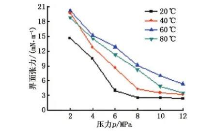 不同溫度和壓力對(duì)AOT穩(wěn)定CO2乳液的界面張力影響(二)