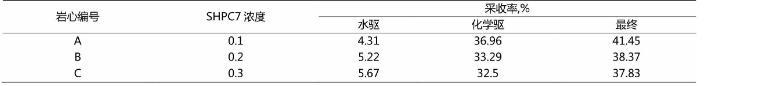 采用相同的巖心,加入不同濃度的SHPC7表明活性劑,從而得到不同濃度下對低滲透油層的驅(qū)油效果。