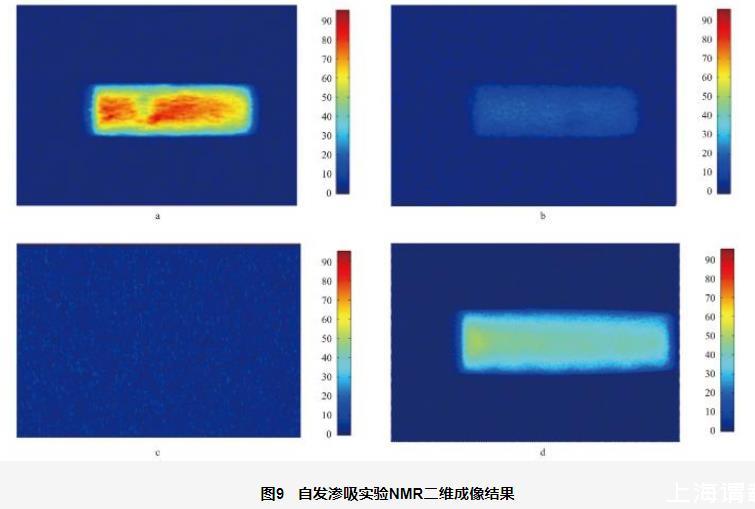 NMR通過快速傅里葉變換和圖像重建生成巖樣的二維圖像,可直觀展示流體在巖心內部的分布。圖9為自發滲吸實驗NMR二維成像結果,縱坐標表示氫信號的強度(即水或油的含量高低),數字越大表示氫信號強度越強。圖中由紅色到綠色、淺藍再到深藍,表示信號由強變弱,也代表了含水(氫)量從高到低的變化過程。由圖9可看出,原始巖心烘干后呈深藍色,自發滲吸后呈紅綠色,經復合表面活性劑體系處理后的巖心自發滲吸后呈淺藍色和綠色;經過復合表面活性劑體系處理后,巖心含水/油飽和度大幅降低,復合表面活性劑體系降低了液體的表面張力,削弱了毛細管力;巖心孔隙的潤濕性由親水親油反轉為疏水疏油,水相在毛細管內的狀態由驅替相轉變為非驅替相,地層水/凝析油不易吸附于巖心孔隙內,表面張力的降低和巖石孔隙表面的潤濕性改變可明顯改善流體在多孔介質內的流動狀況,進而達到預防液侵的目的,這與巖心自發滲吸實驗和NMR T2譜曲線分析結果相符。