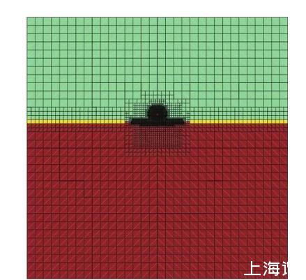 5)限制2)—4)條規則最小加密層數的加密區間為:Y向液滴中心上方2R至水面下方4R;x向對稱軸左右4R內的矩形內,以提高計算效率。