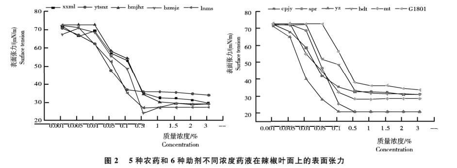 基于表面張力儀等研究常用農(nóng)藥和表面活性劑在辣椒葉面的潤濕能力——結(jié)果與分析、結(jié)論