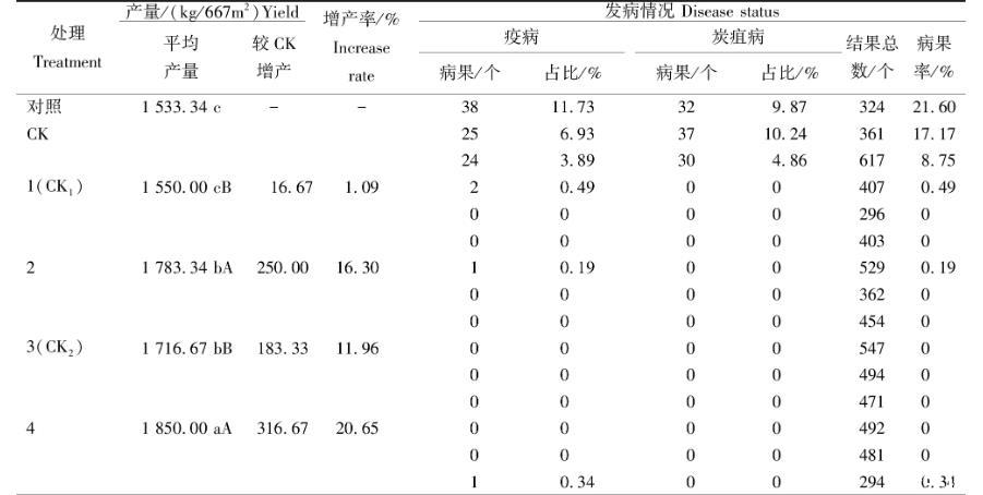 2.2對(duì)病蟲害的防治效果及產(chǎn)量的影響
