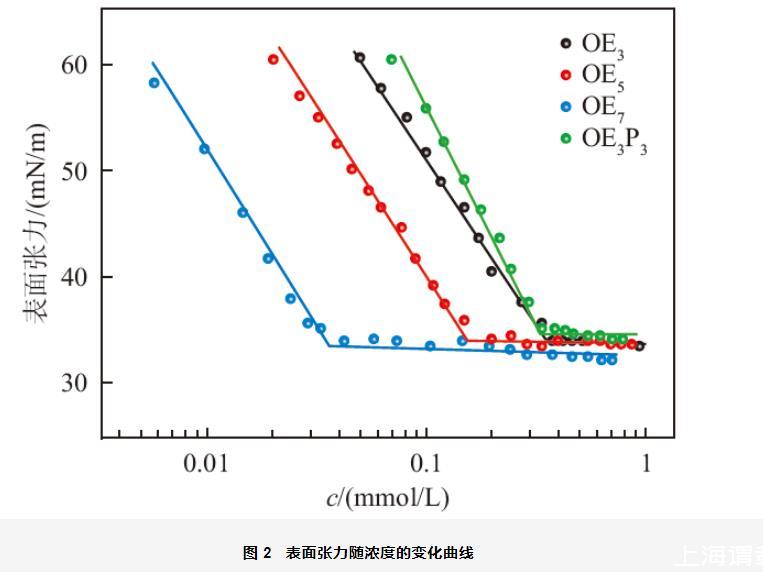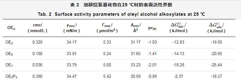 表2油醇烷氧基化物在25℃時的表面活性參數(shù)