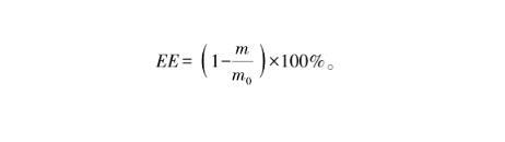 式(1)中,EE為包封率,%;m0為LOPs加入內水相的質量,g;m為從外水相中獲得的游離LOPs的質量,g。
