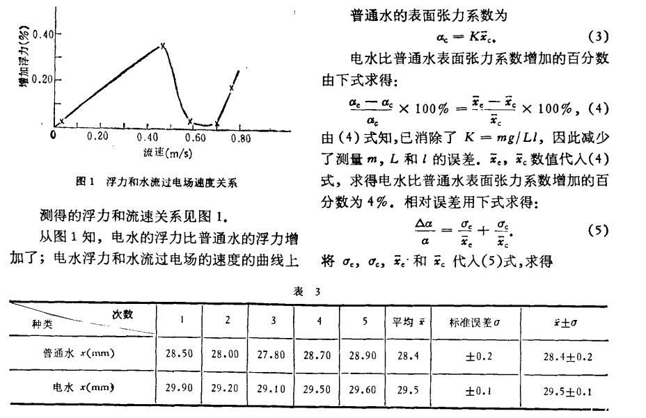 結(jié)果,電水比普通水表面張力系數(shù)增加的百分數(shù)為4%±1%。