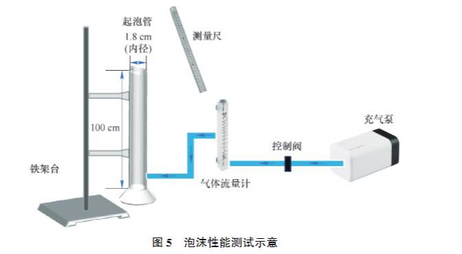 式中,d為泡沫管直徑,cm;H為泡沫層穩定后的液面高度,cm;V為生成的泡沫容積,cm3。