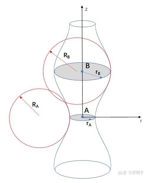 在A點,z方向上產生了負曲率(半徑RA),而r方向上,由于半徑變小,曲率變大。也就是說,A點上的曲率變化產生了兩個效果: