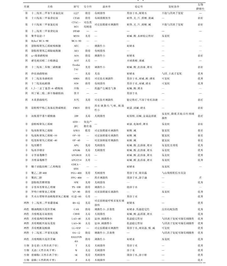 表1常見(jiàn)表面活性劑及其性質(zhì)