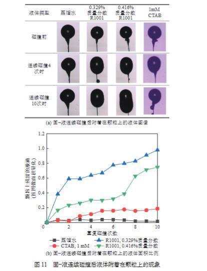 圖11固—液連續(xù)碰撞后液體附著在顆粒上的現(xiàn)象