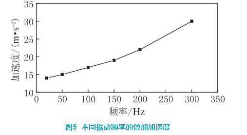 車輛在行駛中傳遞到油水分離器上的振動主要集中在10~340 Hz,沿X方向的主要振動頻率為20、45、100、200、300 Hz,沿Y方向的主要振動頻率為20、50、100、175、203、300 Hz,沿Z方向的主要振動頻率為20、100 Hz,加速度均大于8 m/s2,沿Y方向100 Hz的振動加速度最大約為39.2 m/s2。為了方便對試驗結(jié)果進(jìn)行比較分析,最終選擇在頻率為20、50、100、150、200、300 Hz,加速度為39.2 m/s2的條件下進(jìn)行試驗。