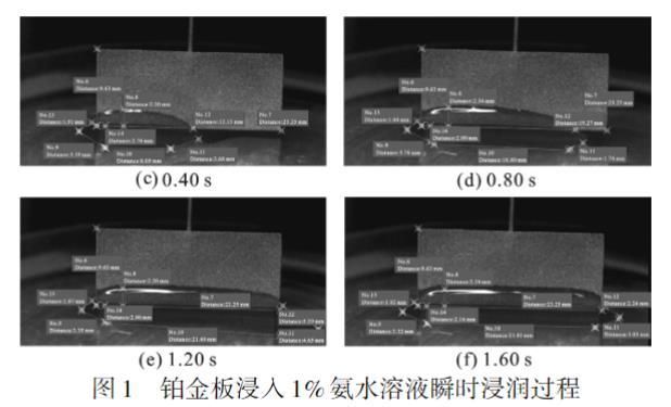 圖1 鉑金板浸入1%氨水溶液瞬時浸潤過程