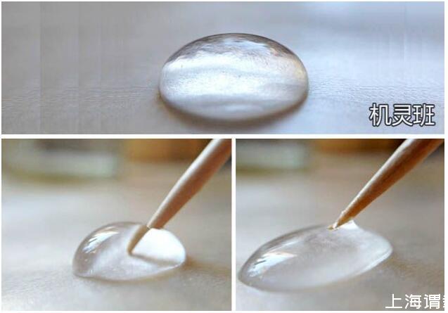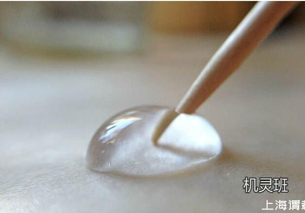 引申實(shí)驗(yàn),在水滴上放置1滴油,把它們混合在一起后,再用干凈的牙簽戳混合后的液滴,看看此時(shí)會發(fā)生什么現(xiàn)象。然后用蘸有洗潔精的牙簽戳混合后的液滴,看看又會出現(xiàn)什么現(xiàn)象。