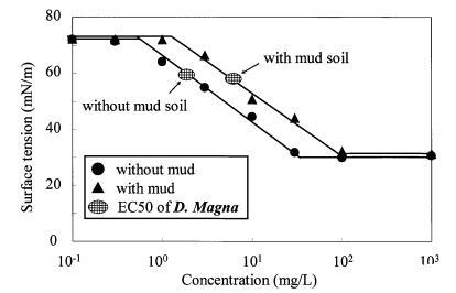 圖13泥質(zhì)土壤存在對(duì)大型水蚤AS表面張力曲線和有毒表面張力值的影響。