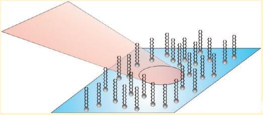 在過去的幾十年中,紅外-可見和頻發(fā)生(SFG)已被證明是研究水相表面活性劑的極好工具。1.?9在該技術(shù)中,紅外激光束與可見激光束在感興趣的界面處組合,并檢測兩者的和頻光束。在中心對稱介質(zhì)中,信號的產(chǎn)生通常是被禁止的,因此對界面上分子的存在非常敏感。如果紅外激光與界面分子的振動躍遷共振,則SFG強(qiáng)度增強(qiáng),從而可以測量界面分子的振動光譜。SFG光譜的形狀包含有關(guān)表面活性劑的分子構(gòu)象和方向的信息。大多數(shù)研究都集中在高密度單分子膜上,盡管在低密度下有令人驚訝的觀察報告。我們中的一些人(Roke等人4)以前曾報告過C?H不溶性表面活性劑DPPC(1,2-二棕櫚酰-sn-甘油-3-磷酸膽堿;見圖1)在水上的拉伸模式,密度約為100?2/分子,密度間隔小于1?2/分子,這歸因于脂質(zhì)尾部的卷曲和未卷曲。最近,Chen等人9報告了DPPC在水和含有低二甲基亞砜摩爾分?jǐn)?shù)的水上的CH信號在該密度附近的類似行為。此外,他們報告說,來自DPPC頭部總成的P=O振動信號僅在CH信號存在時出現(xiàn)。他們將CH信號的缺失/存在歸因于DPPC分子的無序/有序尾部。P=O信號的缺失可通過頭部大的取向分布來解釋。