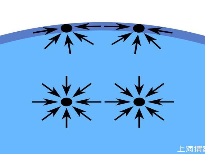 那么,對于任何一個表面,處在物質表面層(也稱“表面相”)的分子,與內部分子在受力情況、能量狀態和所處的環境等方面均不相同。我們以純液體表面為例進行分析。