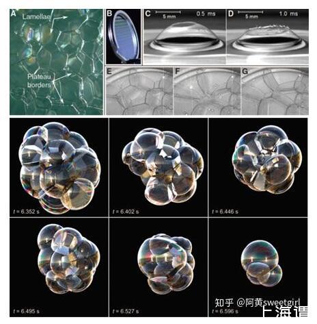 自從Von Neumann推出了二維泡沫的演變方程以來,人們一直希望能推導出三維泡沫的演變方程,直到50多年后的2007年,美國葉史瓦大學MacPherson等在Nature上發表了一篇題為“把von Neumann方程拓展到三維微結構粗化的研究”(The von Neumann relation generalized to coarsening of three-dimensional microstructures)的論文,完成了對三維泡沫體系演變方程的推導(Ref 7)。之后,加利福尼亞大學的Saye等于2013年在Science上發表論文,從模擬上實現了三維泡沫的結構重排、排液、破裂等一系列過程(圖4),在泡沫演變歷史上具有劃時代的意義(Ref 4)。至此,人們對泡沫演變的規律得到了充分的認識。