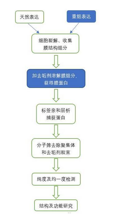 藍(lán)色背景分別是表達(dá)系統(tǒng)與去垢劑的選擇,是整個(gè)流程中至關(guān)重要的步驟。