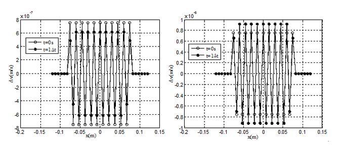 壓縮狀態下速度擾動振幅變化(左)和拉伸狀態下速度擾動振幅變化(右)