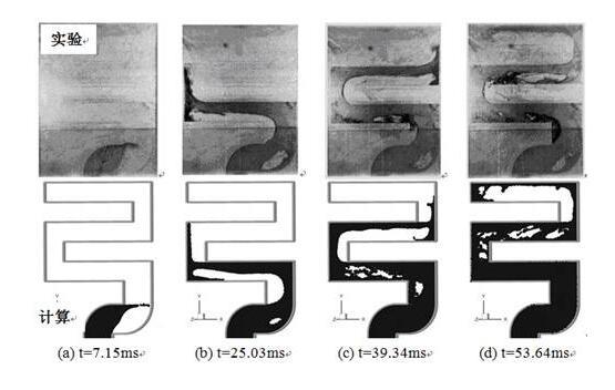 S形型腔充型過程的SPH數值模擬結果和實驗結果[9]對比