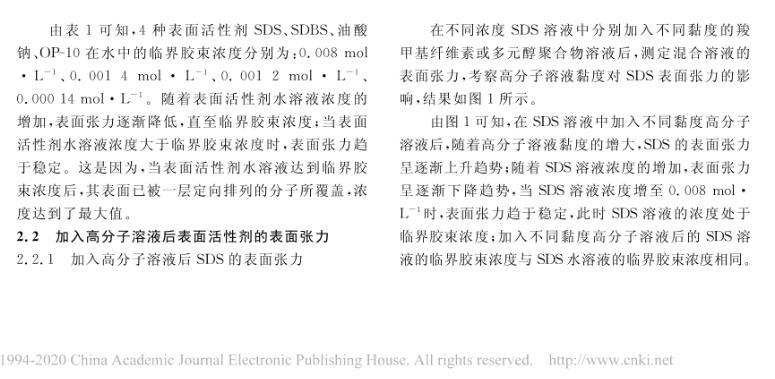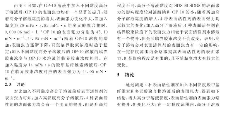 高分子溶液黏度對(duì)表面活性劑表面張力的影響研究