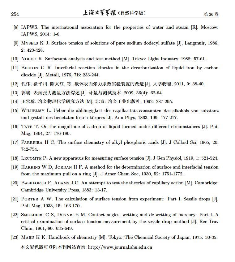 > 新型懸滴實驗系統的研制與二甲基亞砜/甲醇混合物表面張力測量(二)