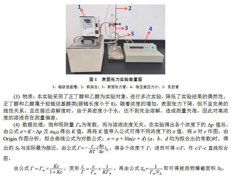 【摘要】:最大氣泡壓力法測定溶液表面張力是物理化學實驗中的一個傳統實驗,由于各種因素的影響,導致學生實驗結果存在較大偏差。本研究通過濃度、溫度等作為變量進行實驗條件探索而得到的結果與文獻值較為吻合。