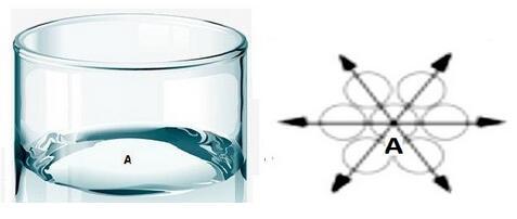 圖1水平面A點示意圖 圖2 A點表面張力方向
