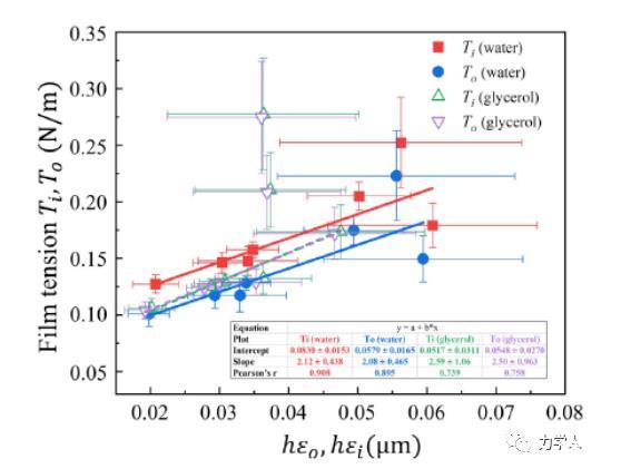 綜上所述,本文基于理論模型揭示了表面張力在調(diào)控液滴-薄膜體系平衡構(gòu)型的作用機(jī)制,首次發(fā)現(xiàn)了薄膜張力隨薄膜鼓包角的非線性解析關(guān)系,以此完善了基于薄膜-液滴體系確定固體表面張力的方案,可用于對高分子材料表面張力的實驗測量和探索高分子材料表面張力與表面能的關(guān)系。